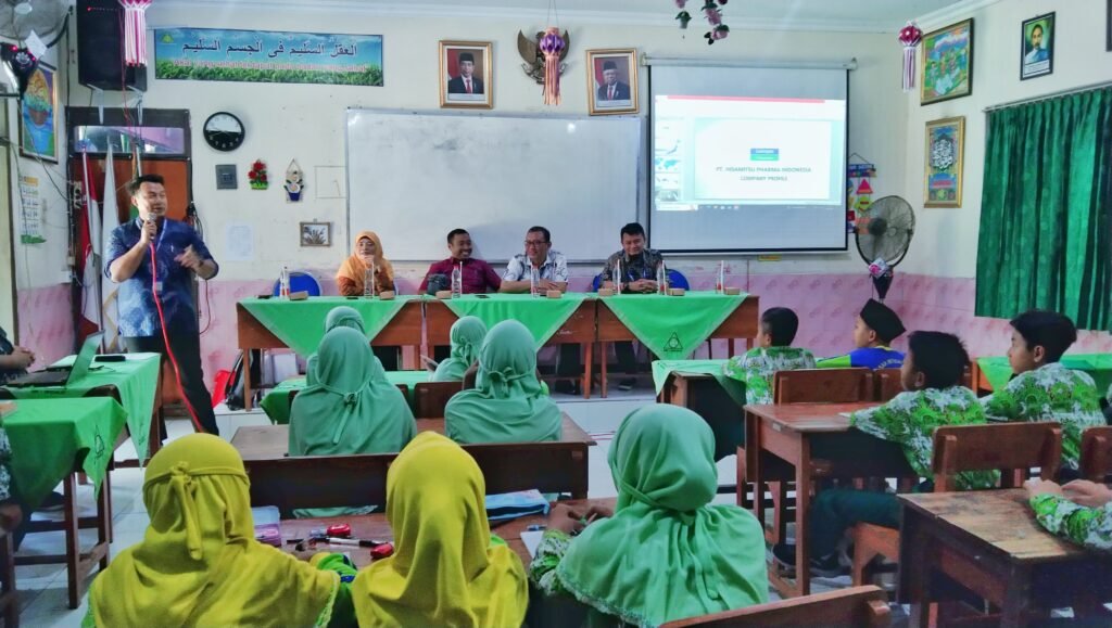 Hadir sebagai narasumber Bapak Habibi dan Bapak Wawan Supriyanto selaku kepala departemen HRD & GA PT. Hisamitsu menyampaikan pentingnya pengelolaan sampah di lingkungan madrasah agar asri dan adiwiyata. Selama ini pengolahan sampah di sekolah atau madrasah masih sangat minim, tidak sebanding dengan sampah yang dihasilkan setiap harinya. Bapak Habibi juga menjelaskan jenis-jenis sampah dan cara untuk memilah dan mengolahnya dengan metode 3R (Reduce, Reuse, Recycle).