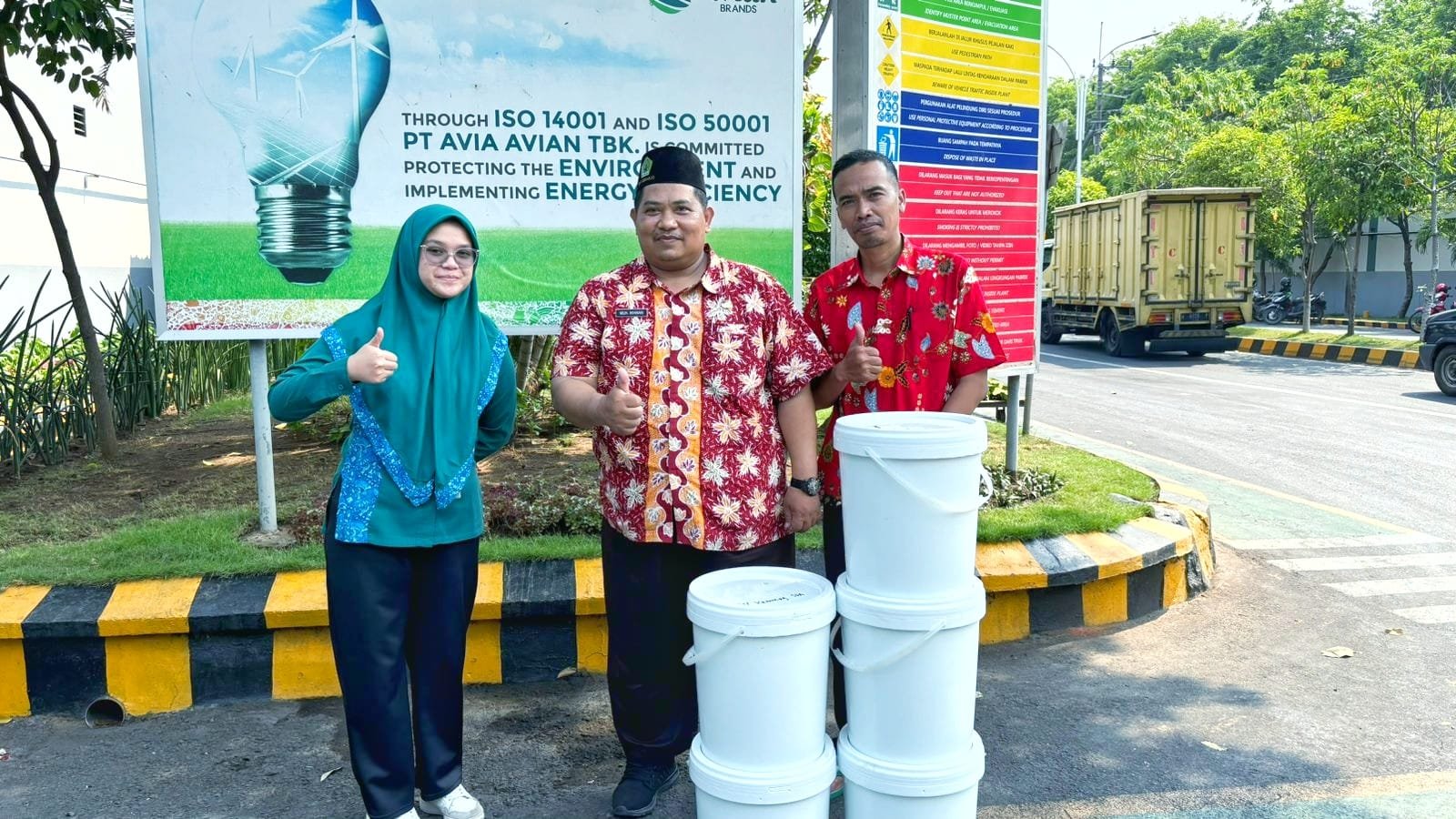SIDOARJO, 24 Oktober 2024 – Dalam rangka mendukung upaya pelestarian lingkungan di lingkungan sekolah, PT Avia Avian Tbk. memberikan bantuan berupa lima pail cat berkualitas premium kepada MIN 1 Sidoarjo. Bantuan ini diberikan pada Kamis, 24 Oktober 2024, sebagai bentuk dukungan perusahaan terhadap program Adiwiyata yang tengah digalakkan oleh MIN 1 Sidoarjo.